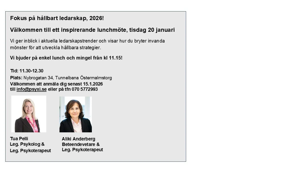 Det finns konkreta metoder  att bryta dessa mönster och bygga ett mer hållbart ledarskap, och vi stöttar dig hela vägen. Med över 25 års erfarenhet av strategisk ledarskapsutveckling kombinerar vi psykologisk expertis med djup affärsförståelse.